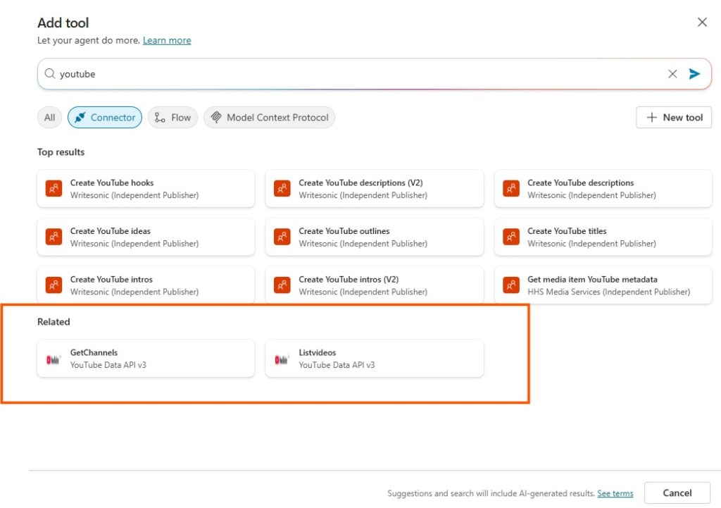 Adding YouTube as a public site source didn’t give me the honey I was looking for. 🐝 By building a Custom Connector with the YouTube Data API, I can now list videos and feed them straight into my Copilot bot.