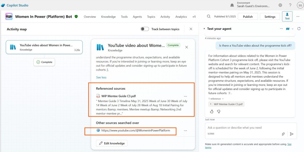 When I first tried to make my Copilot Studio bot answer questions about a YouTube channel, my first thought was simple: just add the channel URL as a public website knowledge source.
